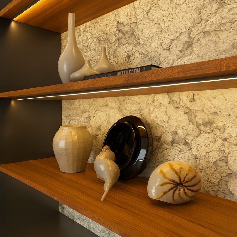 The aluminum housing provides exceptional heat dissipation and protects the LED strip for long-lasting performance.. Operating safely at DC12V and consuming just 10W per meter, it offers high efficiency and brilliant output in warm (3000K), neutral (4000K), or cool white (6000K). The ultra-slim body disappears into surfaces, while aluminum construction ensures heat dissipation and long LED lifespan.