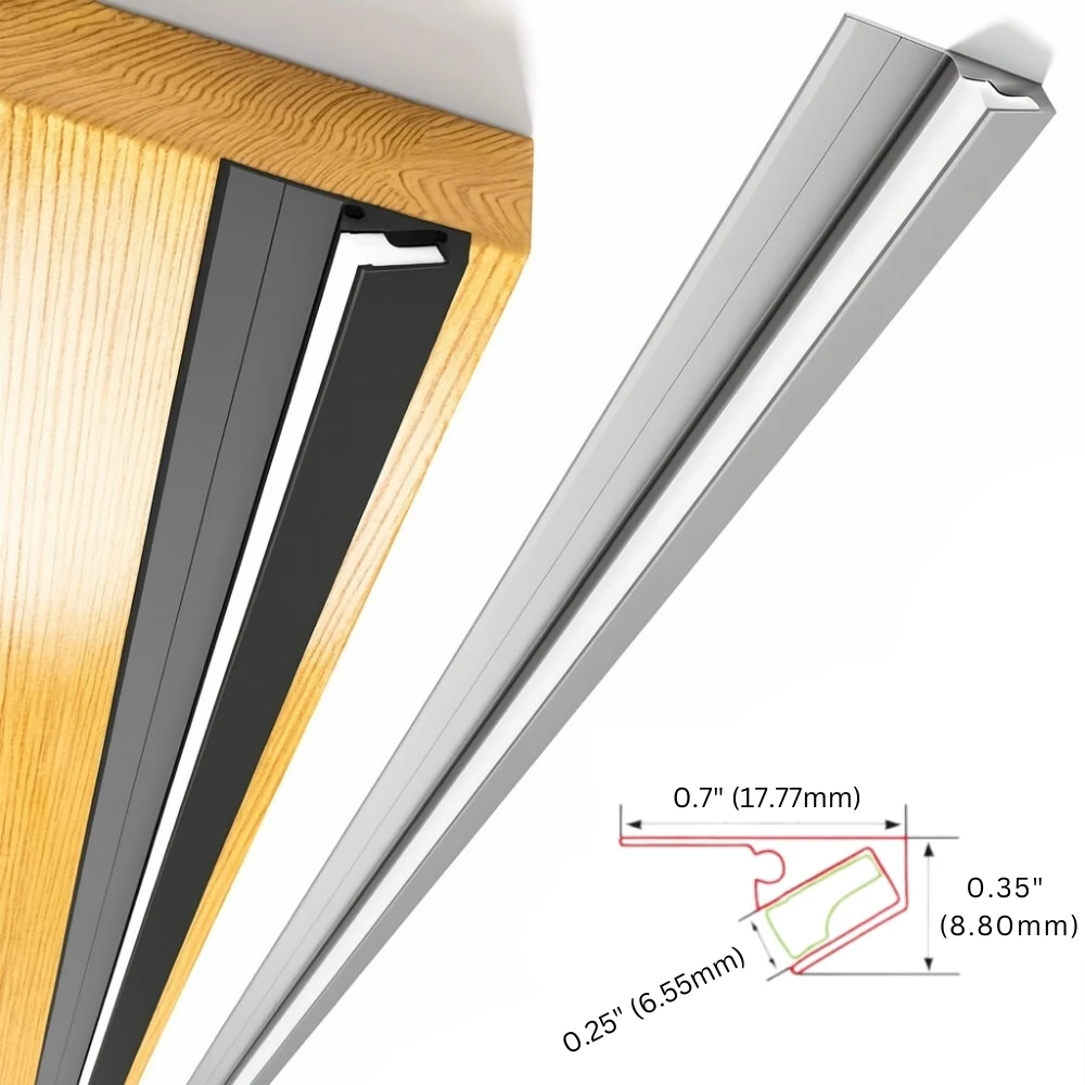 This 45° Angle LED Light Bar is designed for seamless corner illumination and discreet under-cabinet lighting. Its slim aluminum profile directs light at a precise 45-degree angle, making it ideal for shelves, corners, cabinets, and surface applications. Engineered with cuttable and linkable LED strips, each aluminum bar includes cuttable sections and supports end-to-end connections, allowing you to customize and extend the installation across longer runs effortlessly.